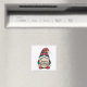 O imã de Saudações da Estação Gnomo de Natal. Um gnomo de Natal festivo, segurando uma placa redonda debaixo da barba, deseja alegremente a saudação de Season, perfeita para cartões de natal e presentes!
