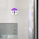 "Argent, uma torre purura entre duas maçãs em xadrez e uma maçã em vert base e em um grande purpuro arame de três flechas."