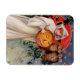 Outro belo ímã flexível do Dia das Bruxas, com uma mulher com um Jack O'Lantern e duas corujas, pintado pelo ilustrador americano Samuel Loren Schmucker.