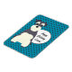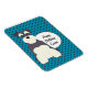 O ímã bonito apresenta um cão Schnauzer com fundo preto e azul de bolinhas e texto de aniversário personalizável central