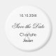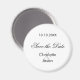 Uma Imã salve a data para o seu casamento. Um fundo branco na moda, texto preto. Personalize e adicione seus nomes e data de casamento.