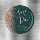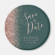 A borda esquerda desta Imã salve a data elegante apresenta uma borda brilhante de faux dourado rosa. O texto personalizável combina o script de escrita manual rosa-rosa com a letra serif num fundo verde escuro.