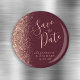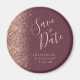 A borda esquerda desta Imã salve a data elegante apresenta uma borda brilhante de faux dourado rosa. O texto personalizável combina um script de escrita manual rosa-rosa com letra serif num fundo burgundy.