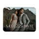 Uma imã salve a data moderna projetada para acomodar sua foto favorita de noivado de sangramento horizontal ou orientada a paisagem. "Salve a data" aparece perto do fundo da sua foto em caracteres brancos e escrita, com seus nomes, data do casamento e local do casamento embaixo. Use a linha de texto adicional para compartilhar seu site de casamento ou detalhes adicionais.