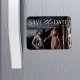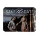 Uma imã salve a data moderna projetada para acomodar sua foto favorita de noivado de sangramento horizontal ou orientada a paisagem. "Salve a data" aparece no topo da sua foto em caracteres brancos e em letras de guião, com seus nomes, data do casamento e local do casamento embaixo. Use a linha de texto adicional para compartilhar seu site de casamento ou detalhes adicionais.
