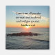 Venha até mim, todos vocês que estão cansados e sobrecarregados, e eu vou te dar descanso. Seja uma bênção para outros com este espantoso nascer do sol sobre a design de fotos do oceano com o glorioso verso das escrituras Matthew 11:28 sobre Camisetas e presentes. Este adorável design Matthew 11:28 fará um presente esplêndido quando abençoar aquele especial que ama Jesus e ler a bíblia. Esta bela foto do verso da Escritura Matthew 11:28 ficará bonita vestindo em uma Tee ou decorando sua casa com um dos nossos charmosos produtos de decoração caseira. Partilhe com tudo o que acredita em Jesus Cristo com todo o seu coração, alma, mente e força.
