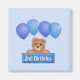 Celebre o segundo aniversário do seu filho com este design colorido com um urso e balões azuis. O urso está segurando uma faixa que lê segundo aniversário. Excelentes, frigideiras, ímanes, canecas de manutenção e botões de favor de festa para o dia especial do seu filho.