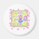 Uma adorável bailarina num fundo verde e rosa de estrelas e texto que diz "Pequena Ballerina I m 2".