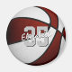 Este ímã legal do tema basquetebol apresenta a imagem de uma bola de basquete realista com marrom alternante e painéis coloridos brancos - facilmente personalizados com o nome do atleta & número de camisa - por katz_d_zynes
