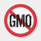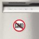 Fazer uma declaração contra a Comida geneticamente modificada (OGM) com o símbolo universal do "não", mostrando a mensagem "não OGM" em cima de um círculo vermelho e de uma linha diagonal.