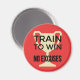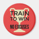 Este ímã vermelho brilhante tem a imagem ouro de um troféu esportivo e o slogan motivacional "TRAIN TO WIN NO EXCUSES". Lembre-se disso enquanto estiver treinando duro e você será inspirado a atingir seus objetivos.