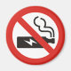 Ícone eletrônico de cigarro com círculo vermelho proibido.