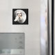 Uma pintura digital de uma cabeça feminina e um lobo branco na lua.