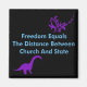 Quando a Igreja e o Estado se deitaram juntos, nossa liberdade diminui. Um dinossauro e uma flor do conhecimento são separados por texto: "Liberdade é igual à distância entre Igreja e Estado."