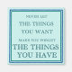 O ímã inspirador lembra-nos que nunca devemos deixar que as coisas que queremos na vida nos façam esquecer o que já temos.