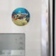 Dois amigos, uma bela sereia nadando com um golfinho num oceano de fantasia azul