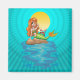 A sereia relaxa em rochas com caranguejo amigável sob a lua amarela.