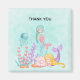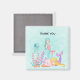 Obrigado imã com uma ilustração de aquarela fofa. 2 sereias nadando sob o mar entre a flora. Uma água-viva feliz também flutua. Querido e ilustração encantadora.