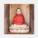 Serene e sorrindo: uma pequena estátua budista vestida de tecido vermelho no complexo idiota de Kakku. Fotografia de Sabine Steinmüller.