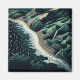 Serene Shores: This stunning top-down illustration captures the harmony of land and sea, featuring waves gently breaking on sandy beaches with lush green mountains in the background. Rendered in soothing shades of dark blue-green, the artwork evokes a sense of tranquility and balance. The intricate detail of the ocean’s patterns meeting the shore, paired with the trees lining the water’s edge, enhances the peaceful atmosphere. Created in a woodcut print style with simple lines and a flat design, the piece is reminiscent of hand-drawn animation, offering a timeless, serene depiction of nature’s beauty.