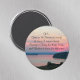 Magneta redonda e decorativa para casa ou escritório que mostra a imagem fotográfica de um pôr do sol de paisagem rosa junto com a inspiração Serenity Prayer. Selecione o tamanho do seu ímã.