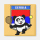 Este adorável panda adora sair no tribunal e bater em algumas bolas. Panda toca em frente a uma grande bandeira da Sérvia. Este é um design excelente para qualquer um que ama jogar tênis, assistir tênis ou apenas amar pandas bonitinhas.