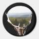 Uma pintura digital da cabeça de Buck com vista a árvores cobertas de colinas e montanhas entre suas galhadas. Esta imagem não tem fundo, você pode escolher uma cor de fundo diferente.