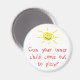 Compartilhe um pouco de humor com este ímã engraçado que diz "O seu filho interior pode sair para brincar" com um sol sorridente e um escrevendo de giz.