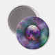 Padrões fractais vívidos e brilhantes circulam como uma tempestade elétrica de cor arco-íris com raios azuis, verdes, roxos, cor-de-rosa e laranja. Um ninho escuro, mas colorido, no meio.