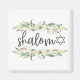 Este design de "Shalom", ilustrado com lírios brancos, delicados e de cor aquática e com uma Estrela de David, oferece uma saudação de paz e bem-estar. Um presente perfeito de decoração para os entes queridos judeus, esta design evoca um sentimento de tranquilidade e boa vontade. Copyright e projetado por JA Murphy Design LLC (2023)