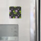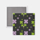 Padrão floral uniforme original, shamrocks verdes e roxos de sorte em fundo preto.