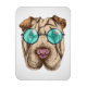 Esta design apresenta um retrato de um cão Sharpei vestindo óculos coloridos.