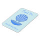 Este incrível ímã Chá de fraldas apresenta uma bonito casca azul aberta com uma cor azul pálida azul esmaecida sentada dentro num fundo cintilante. Um design excelente para celebrar um bebê. Há texto personalizado para que você possa personalizar esta design com o nome da Mãe a Ser.
