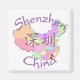 Shenzen, da província de Guangdong, num mapa colorido da China, inclui os símbolos chineses para "Shenzhen" e a sua localização está marcada no mapa com um coração e uma bandeira. Um belo e único presente de adoção da China! Personalize-o com um nome ou foto também! Projetada por Hendrika em RedThreadMaps.com