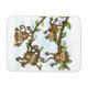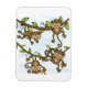 Camisetas, bolsas, canecas, canecas, cartões, adesivos, chaveiros, travesseiros, revistas, mousépias e outros talheres de macacos apresentam quatro macacos marrons giros balançando de galhos de árvores e comendo bananas contra um céu azul.