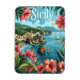 Uma representação vívida e nostálgica de uma praia tropical na Sicília, mostrando a espantosa beleza costeira da ilha. A design apresenta areias ouros, águas turquesas limpas e palmeiras exuberantes contra um pano de fundo da paisagem serena mediterrânica. Criado ao estilo vintage, o trabalho de arte evoca o relaxante e exótico alento das praias tropicais da Sicília, convidando os espectadores a vivenciar as suas costas ensolaradas e tranquilamente saborosas.