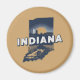 A na moda imã de geladeira apresenta uma silhueta de estado cênico retrô de Indiana sobre fundo marrom-claro.