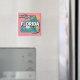 A imã de geladeira retrorada apresenta a vinheta da Flórida completa com o flamingo e a silhueta de estado em fundo rosa.