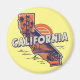 Imagem do frigorífico divertida no estilo retrô Silhueta estadual da Califórnia em fundo amarelo ensolarado