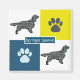 Padrão de abstrato do cão Springer Spaniel amarelo, azul e preto. As impressões da pata alternando com a silhueta fofinha fazem um padrão legal. Você pode personalizar com seu nome de animais de estimação ou simplesmente deixar a raça.