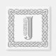 Este design de íman bonito apresenta uma borda Celtic Knot e uma letra J monográfica num efeito gravado de prata.