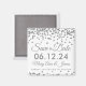 Design de casamento elegante "Salvar a data" com Silver Faux Glitter Confetti White / Cinzas, nomes personalizados e texto de data.