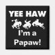 Yee Haw, eu sou uma camiseta Papuásia, canecas, cartões, adesivos, botões de anúncio, keepsakes de papá, e outros presentes de mamão com um cavalo de fivela e design de texto preto. Estes itens de roupa e presentes são perfeitos para avós pela primeira vez ou mamão temperado de uma nova chegada!