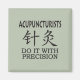 "Acupunturistas fazem isso com precisão" é o perfeito design engraçado para o especialista em acupuntura! Com o símbolo chinês para acupuntura. Adicione seu próprio texto, escolha as cores de fundo. Peça aos funcionários que o vistam ao redor do escritório, que o coloquem em cartões de rack, cartões de visitas ou postais para os seus cartazes! Não se esqueça de personalizar as combinações de cores e fontes.