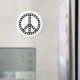 Este design apresenta um sinal de paz preto adormecido com flores brancas.
