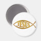 O peixe de Jesus é um símbolo cristão favorito de todas as gerações. Esta design tem um contorno dourado do símbolo do peixe. A palavra Jesus é colocada no centro com a letra dourada. Propriedade de imagem de GospelGifs.