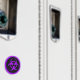 Íman do frigorífico símbolo de perigo biológico, em roxo e preto.