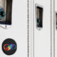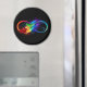 Símbolo infinito desenhado artificialmente com uma bela pena arco-íris sobre fundo branco. Tatuagem.