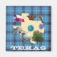 O Tartan oficial do Estado do Texas constitui o fundo enquanto um mapa do Texas sobreposto com outros símbolos oficiais do Estado completa a design. Que maneira excelente de mostrar orgulho em seu Estado — o melhor da nação!