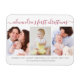Este simples ímã de fotos moderno é a maneira perfeita de dizer à sua família e amigos que é o primeiro Natal do bebê. A design apresenta uma colagem de três fotos com e uma simples tipografia para personalizar com o nome do seu bebê, um pequeno desejo de feriado e o nome da sua família.